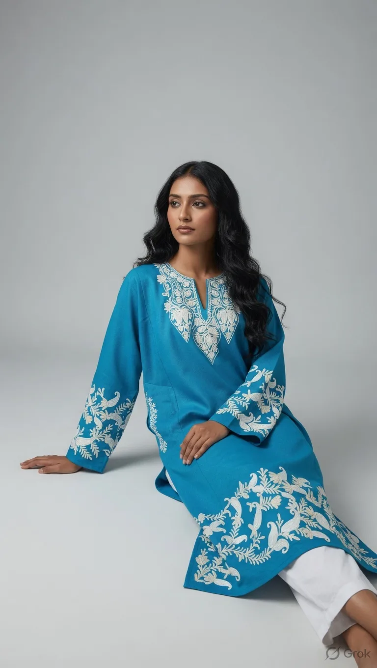 OUTFIT STYLING: Style it with leggings or jeans and boots for a sophisticated touch. Keep accessories minimal to let the phiran’s intricate embroidery stand out.